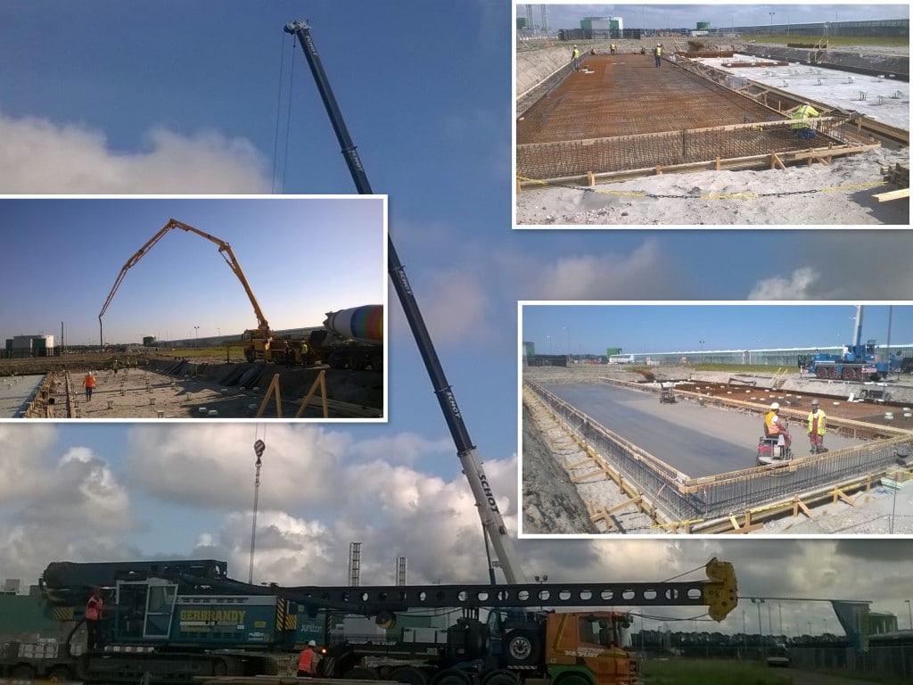 Inmiddels zijn de kelders van zowel het schakelgebouw als de trafocellen gereed en ligt de beganegrondvloer van het schakelgebouw op zijn plaats. Tevens is het heiwerk voor de te realiseren schakeltuin nog voor de bouwvak gereed. Er staat dus een goede basis, zodat na de bouwvak de werkzaamheden boven het maaiveld en het funderingswerk van de schakeltuin opgepakt kunnen worden.