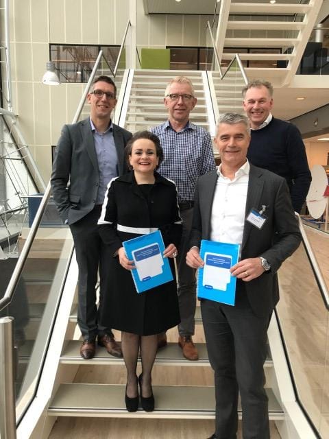 Op donderdag 5 april j.l. werd ons project contractueel vastgelegd door Alexandra van Huffelen en Ron Oudeman. Op de trap staan Alexandra van Huffelen (algemeen directeur GVB) en Ron Oudeman (algemeen directeur K_Dekker bouw & infra) en de project betrokken mensen Robin Eman (GVB), Dick voor den Dag (GVB) en Stephan van den Berg (K_Dekker).