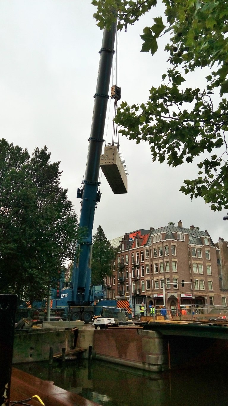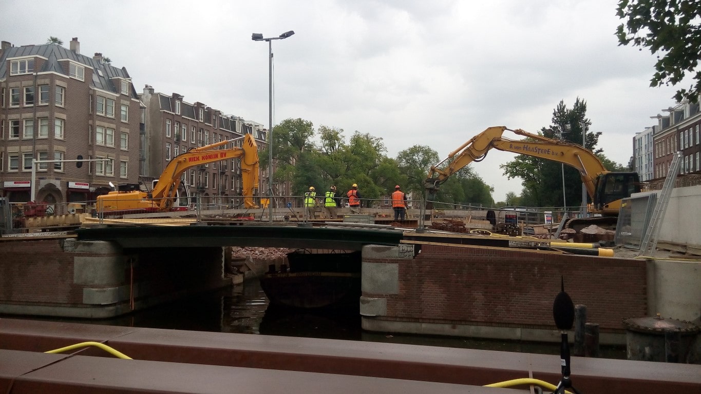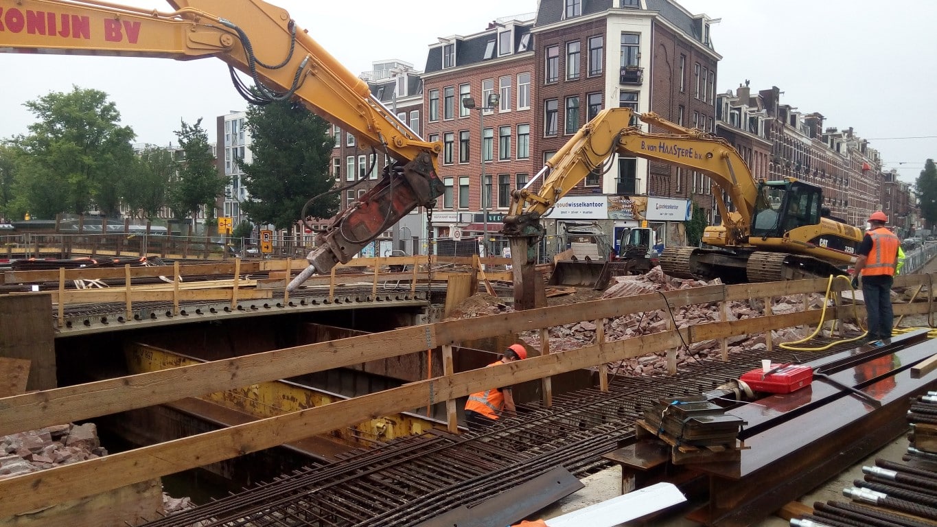 Afgelopen bouwvak is in 16 dagen een compleet nieuw tramdek gebouwd. Dit houdt in dat de complete tramrails, bovenleiding, tramdek, pijlers en landhoofden zijn gesloopt. Vervolgens zijn er prefab pijlers en landhoofden geplaatst en aangestort met de rest van de constructie. Tot slot heeft K_Dekker bouw en infra de prefab liggers geplaatst en de druklaag gestort. En dat allemaal binnen 10 dagen van 24 uur! Het GVB heeft in de overige 6 dagen de tramrails en de bovenleiding weer terug gebracht en kon de tram weer rijden over het nieuwe brugdek.