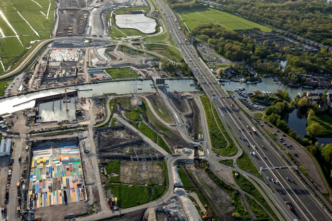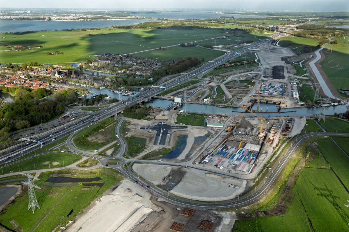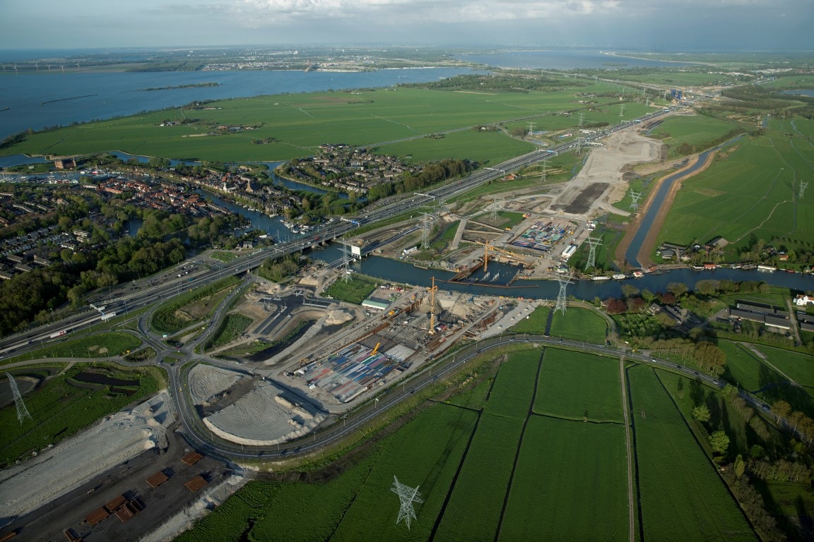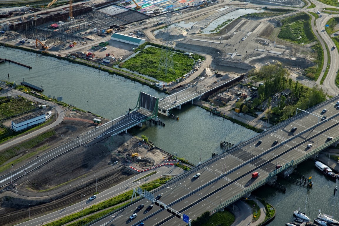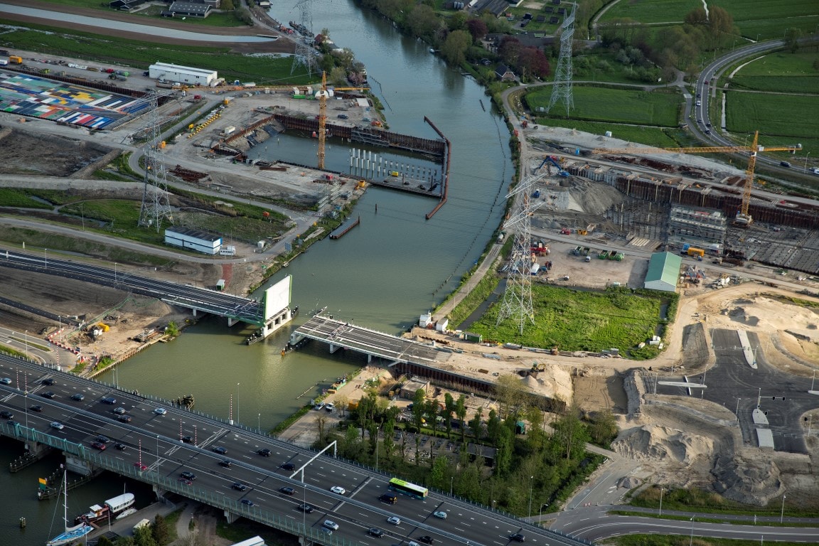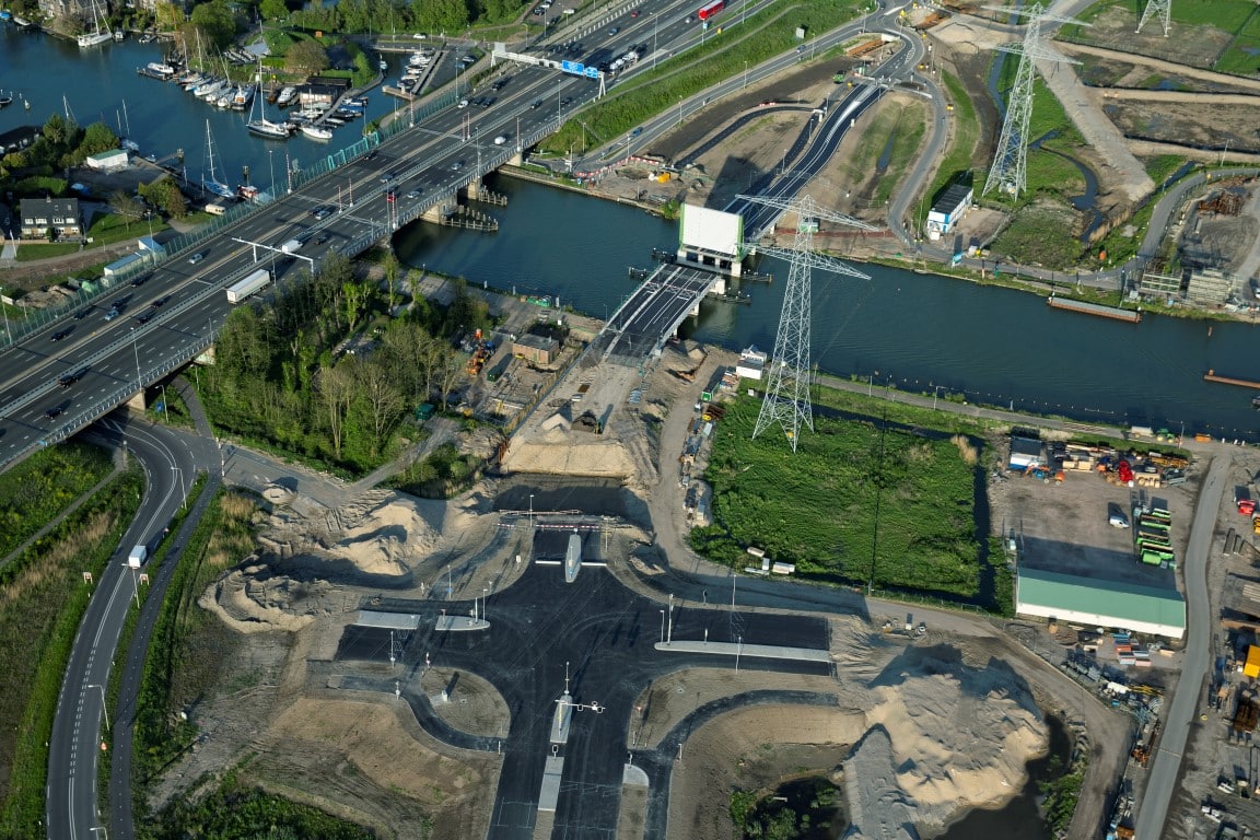 In opdracht van Provincie Noord-Holland realiseert bouwcombinatie K. Dekker / Ooms de Spieringbrug te Muiden. De 360o view rondom de Spieringbrug geeft een mooie kijk op de stand van zaken. Na het bekijken van de luchtfoto’s kunt u concluderen dat de brug zo goed als gereed is voor gebruik. Het asfalt gedraaid en de geleiderail is gemonteerd. Enkel het leuningwerk en de randliggers moeten nog gemonteerd worden. De brug is getest en functioneert goed.