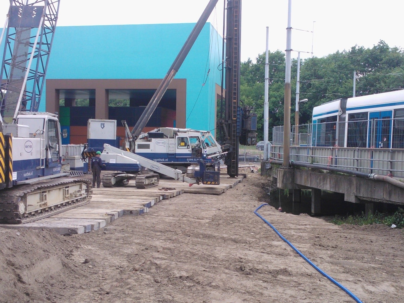 Om ruimte te creëren voor een ontsluitingsweg en het vergroten van het betreffende station, wordt de aangrenzende watergang verlegd. Derhalve wordt als eerste een nieuwe damwand geplaatst die dienst zal doen als kadewand. (zie afbeelding)