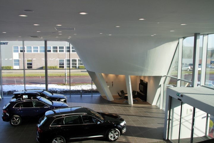 Wat direct opvalt is het raakvlak dat beide bedrijven gemeen hebben: Trots. De ogen van John worden steeds getrokken naar de foto van de autogarages aan de muur en hij verteld vol enthousiasme! K_Dekker is met recht trots op de uitvoering van dit project en dat is John ook. “De nieuwe Audi garage is in slechts zeven maanden tijd gesloopt, opnieuw opgebouwd en qua grootte verdubbeld. Een verbouwing als deze in zo’n korte tijd realiseren; dat kan alleen als je een team hebt staan dat buitengewoon goed samenwerkt én er een uitvoerder op de werkvloer loopt die tot in de puntjes kritisch en scherp blijft. En dat moet ik de uitvoerder van K_Dekker (Marcel Schouten) écht meegeven, grote complimenten voor hem. Met zijn kennis en ervaring had hij alle vrijheid binnen bepaalde kaders en dat heeft hij perfect uitgevoerd”, verteld hij enthousiast.