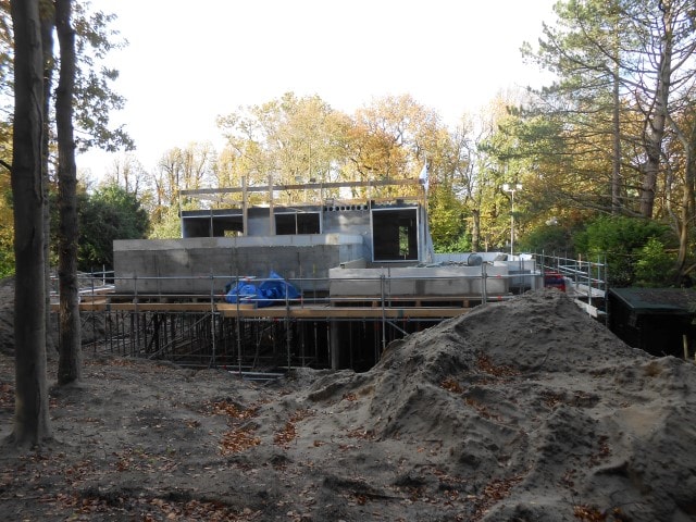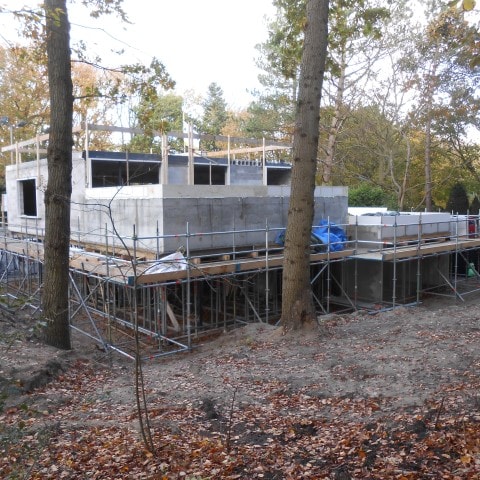 De uitvoering van de betonconstructie is uitgedacht en gemaakt samen met de afdeling betonbouw van K_Dekker, een mooi staaltje integrale samenwerking. De villa wordt bijna in zijn geheel afgewerkt met stucwerk, een klein gedeelte met frake hout en de kozijnen zijn van aluminium. Begin november is het hoogste punt bereikt en aan het einde van deze maand moet de villa wind- en waterdicht zijn.