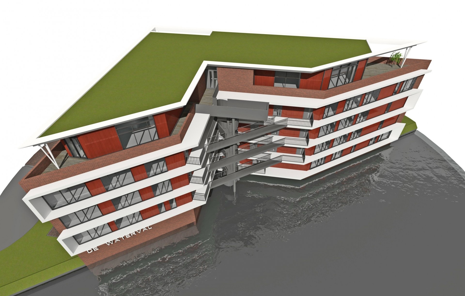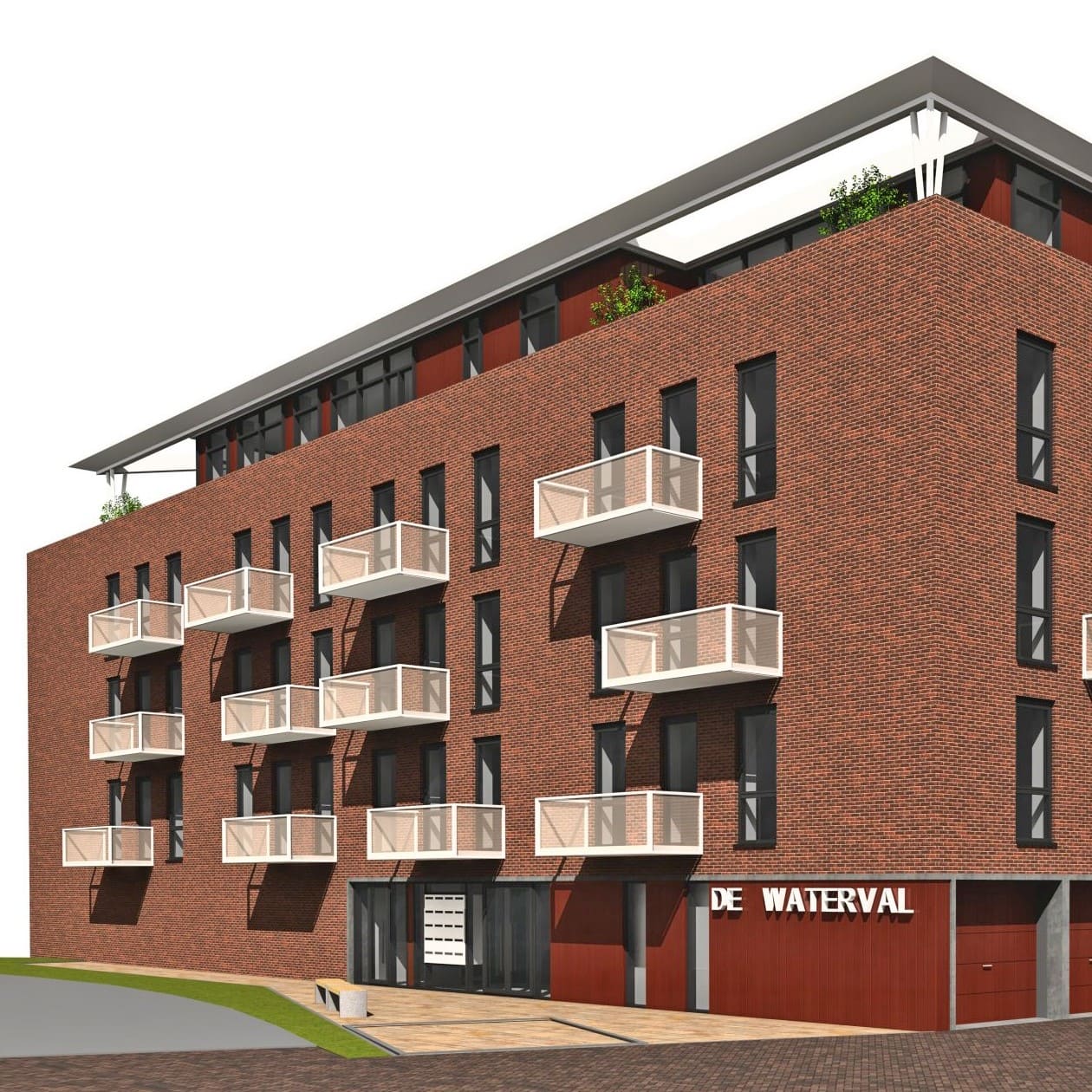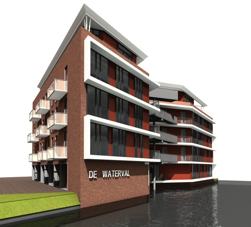Het vier verdiepingen tellende complex Waterval aan het westerpark in Schagen wordt verdeeld in 19 appartementen. De begane grond wordt ingericht met bergingen en garages. Vanaf de eerste tot en met de vierde verdieping is er een mix van negen starters-, drie seniorenappartementen en zeven luxe appartementen waarvan twee penthouses. De Waterval valt op door warme kleurstelling en afwerking. Speciaal is ook de schuine dakrand met ledverlichting.