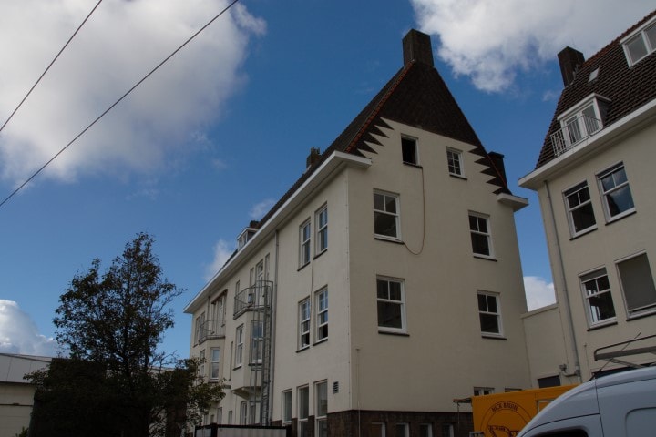 Ook de buitenzijde van het pand is grondig aangepakt. Tijdens de bouwwerkzaamheden is geconstateerd dat er vleermuizen in de spouw zaten. Hiervoor heeft K_Dekker kleinbouw na het broedseizoen vleermuizenkokers in het buitengevel isolatiesysteem verwerkt, zodat ook de vleermuizen gebruik kunnen maken van een warm winterverblijf. Verder is de buitenzijde geïsoleerd en opnieuw afgewerkt met een Sto isoned gevelisolatiesysteem. Het pand is voorzien van nieuwe dakbedekking en dakopstanden en betimmerd met een duurzame, onderhoudsvrije cembrit vezelcementplaat in een opvallende kleur. Tevens zijn alle kozijnen vervangen voor aluminium kozijnen, zodat het onderhoud beperkt is.