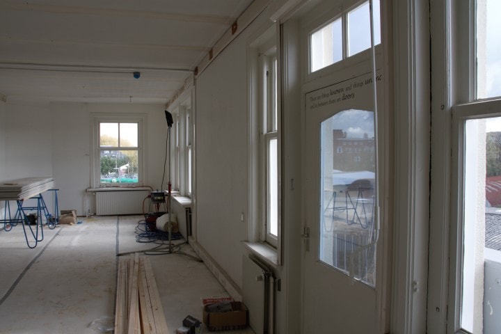Het pand is oud, maar daardoor des te uitdagender om te verbouwen. Hier komt écht vakmanschap aan te pas en het timmerwerk is puur maatwerk. Veel oude details blijven behouden, zoals de oude spanten in de kap van het pand en de oude schuiframen, zijn in originele staat hersteld met nieuwe kozijnen. Bijzonder bij zo’n opdracht is dat de vaklieden echt mee mogen denken met de opdrachtgever op zoek naar mooie oplossingen, zo kunnen zij hun vakmanschap echt toepassen.