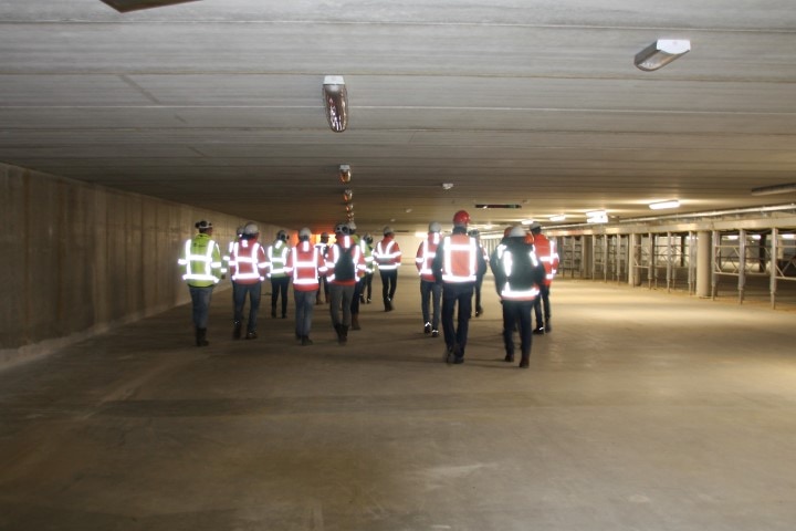 Een groep tweedejaars studenten Civiele Techniek van Hogeschool Inholland Alkmaar heeft een rondleiding gehad bij project Parkeergarage Ravel aan de Zuidas in Amsterdam om eens uit de boeken te duiken en de praktijk te ervaren.