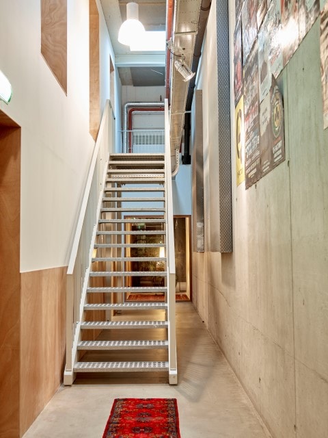 De basis van het pand was een casco ruimte waarin we een geheel opzichzelfstaande ruimte hebben gemaakt doormiddel van vrijdragende vloeren, wanden en plafonds.