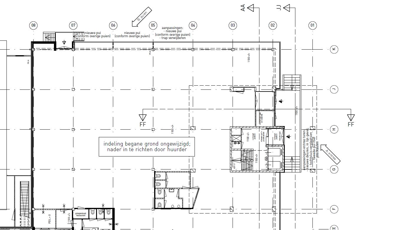 De werkzaamheden bestaan voornamelijk uit het aanpassen van de buitengevels. Bestaande puien en gemetselde gevels worden gesloopt en voorzien van nieuwe aluminium gevelkozijnen.