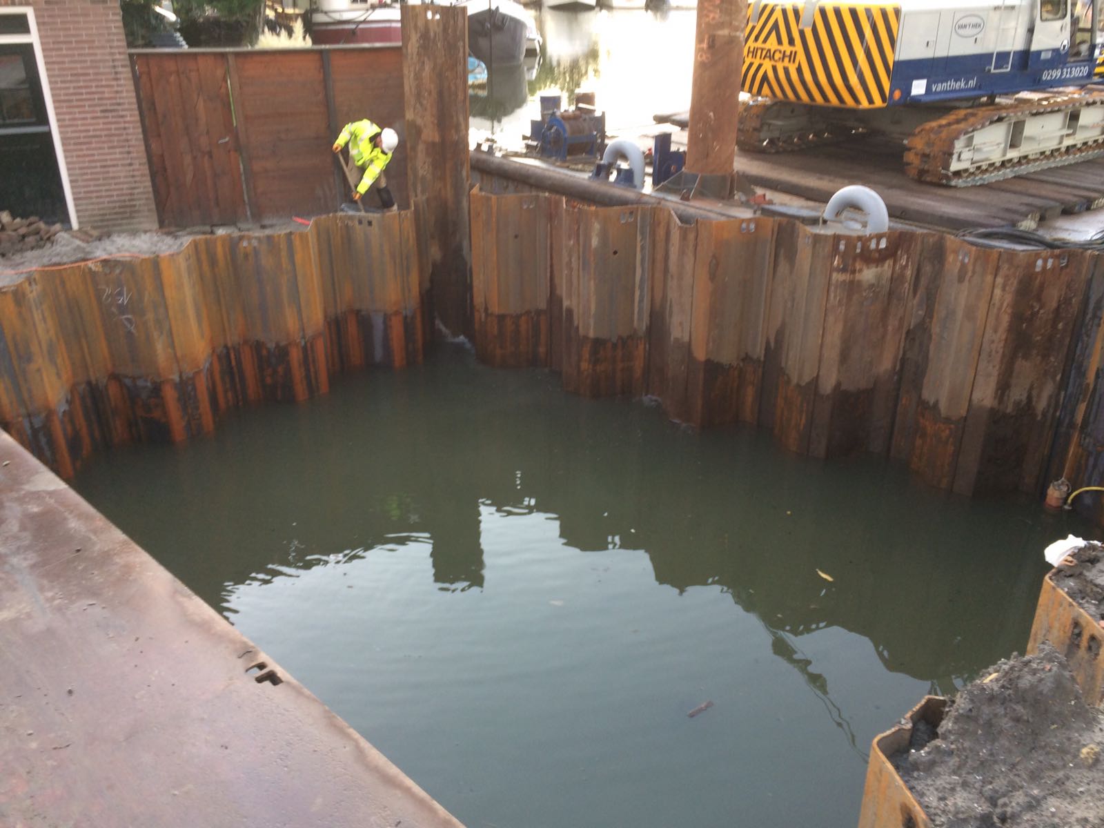Samen bouwen we sterk! Monumentale restauraties, daarmee slaan we de handen ineen met de mannen van Pronk Bouw. Wederom wordt er gezamenlijk een Provinciaal monument gerestaureerd en geconserveerd voor het Hoogheemraadschap Hollands Noorderkwartier (HHNK). Het voormalige stoomgemaal welke dateert uit 1871 is een provinciaal monument. Dat geldt ook voor de uitstroomconstructie. Richting Nieuwesluis is een nieuw gemaal gebouwd, maar de oude mag niet gesloopt worden omdat dit een monument is. Ook moet de watergang haar functie behouden. Het gemaal is volledig drooggezet om de stenen muren te inspecteren en herstellen.