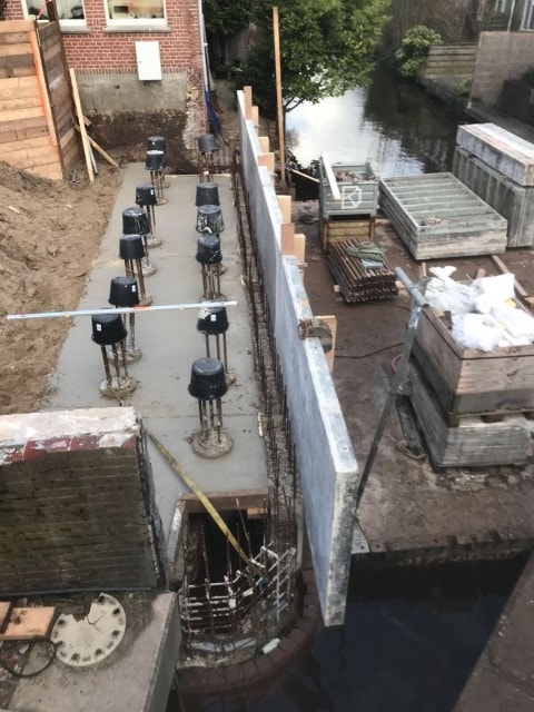 In opdracht van gemeente Harlingen is K_Dekker in januari begonnen met het vervangen van de palen en het herstel van de kademuren. Daarbij worden 7 meter lange basralocuspalen gebruikt, dezelfde houtsoort die destijds ook is toegepast.