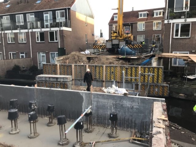 Bij het slopen is een deel van de bestaande fundering blijven staan, zodat deze fungeert als grondkering. Momenteel wordt er hard gewerkt om de landhoofden gereed te krijgen, zodat het dek begin februari feestelijk geplaatst kan worden.