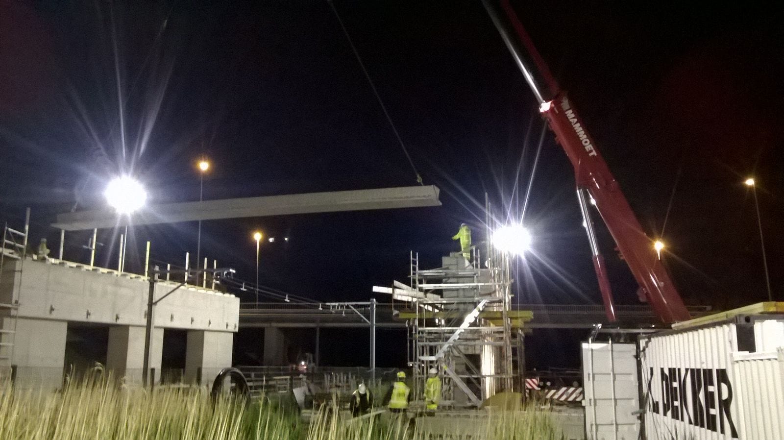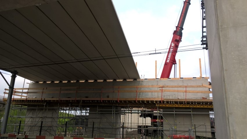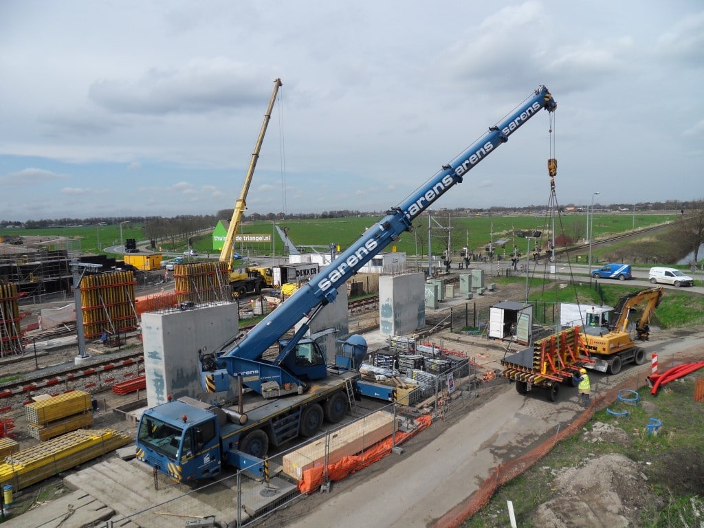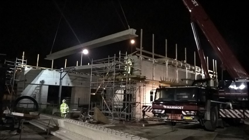 De liggers wegen ongeveer 16 ton per stuk, waarvoor een telekraan van Mammoet ingezet moest worden. De brugliggers voor het andere spoorviaduct wordt in een buitendienststelling (treinvrije periode) van 24 uur geplaatst en gemonteerd. Deze prefab liggers zijn ongeveer 65 ton per stuk, waarvoor twee telekranen benodigd zijn om de liggers op hun plek te hijsen. Een leuke en mooie uitdaging in verband met logistiek en technische afstemming met andere aannemers.
