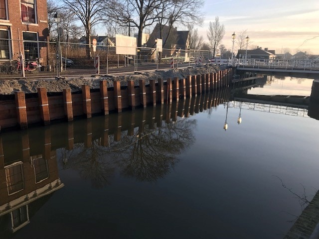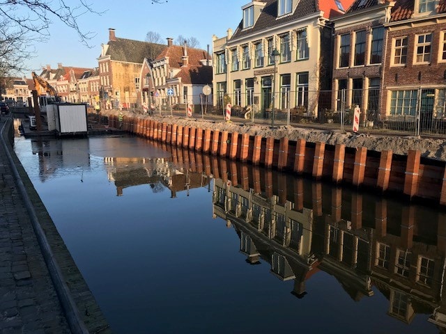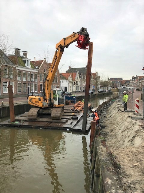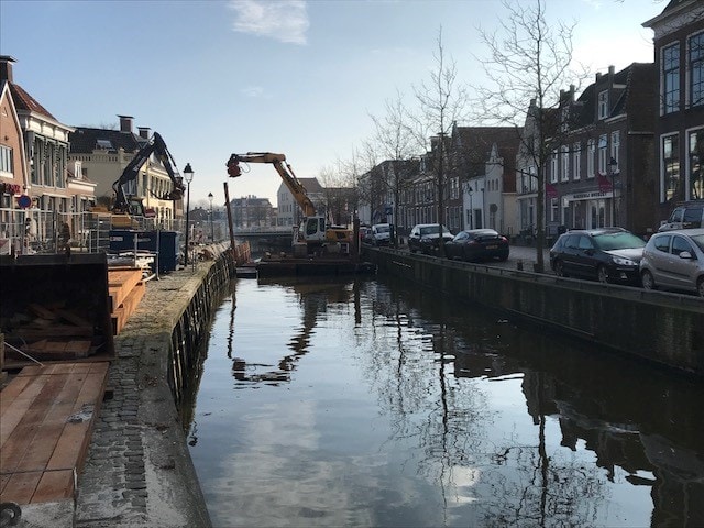 In opdracht van gemeente Harlingen is K_Dekker in januari begonnen met het vervangen van de palen en het herstel van de kademuren. Daarbij worden 7 meter lange basralocuspalen gebruikt, dezelfde houtsoort die destijds ook is toegepast.