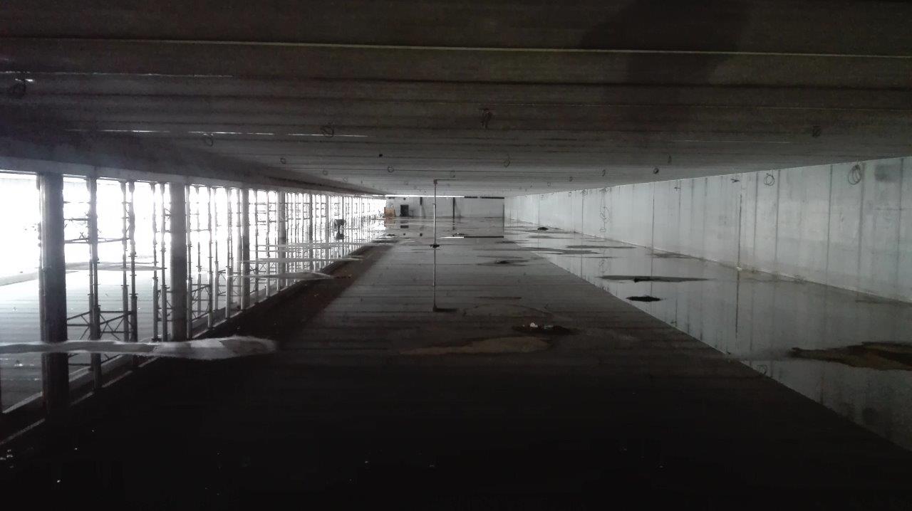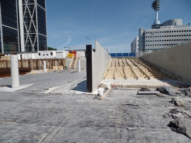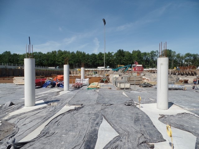 Om ruimte voor de parkeergarage te maken is er ruim 30.000m3 grond uitgegraven. De betonnen vloer is verankerd in de grond met 584 ankers die zorgen dat de vloer niet omhoog komt. Na het uitharden van de, in het werk gestorte vloer, zijn er prefab wanden en kolommen geplaatst.