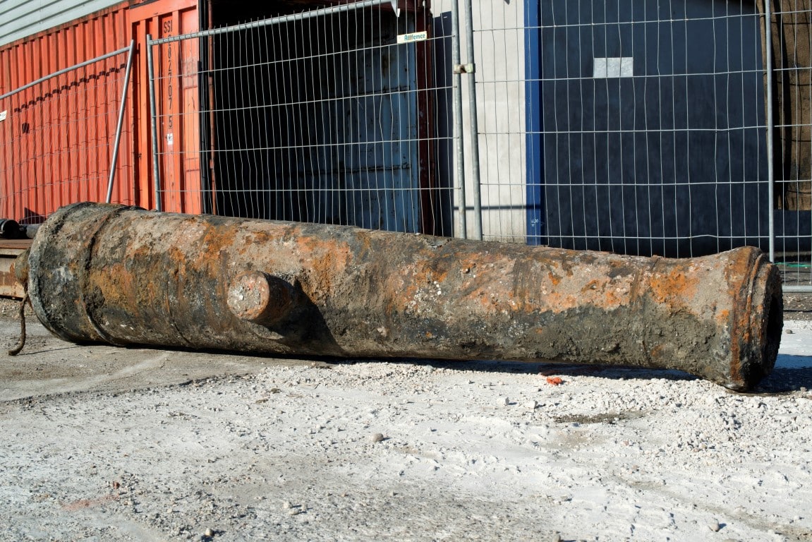 In opdracht van de Gemeente Amsterdam is Aannemingsbedrijf K_Dekker bouw en infra bezig met het vervangen van de kade aan het Amsterdam Rijnkanaal op het Cruquiuseiland. Tijdens het vrijgraven van de kademuur had de kraanmachinist opeens wat zwaars in zijn bak zitten. Een kanon van 3 meter lang! Doordat het team hier goed op gereageerd heeft, is er geen extra schade ontstaan aan het kanon.