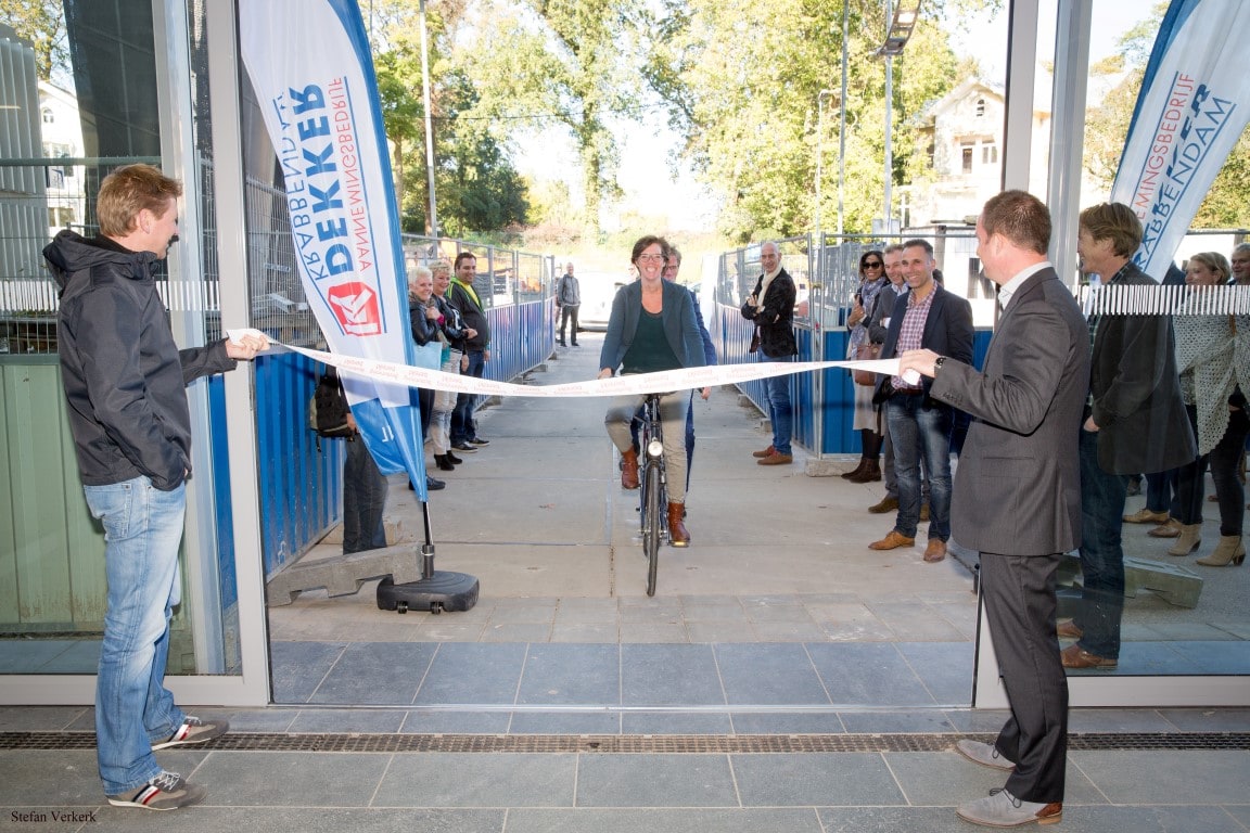 De wethouder van gemeente Haarlem, mevrouw Sikkema, en de regiodirecteur van ProRail, de heer De Vries, openden dezelfde middag de fietsgevel toepasselijk per fiets. Met de bouw van de fietsgevel is het programma ‘Ruimte voor de fiets’ afgerond.