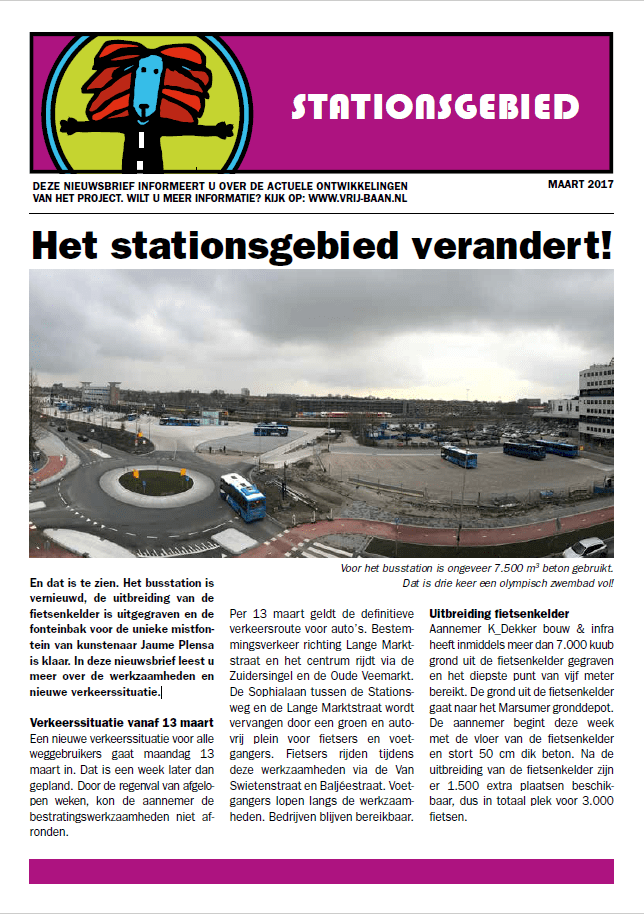 Uitbreiding van de fietsenkelder, een nieuw busstation en een autovrij plantsoen hebben gezorgd voor een metamorfose van het stationsgebied in Leeuwarden. De gemeente had hoge eisen gesteld aan het hele proces en wilde garanties voor een goed eindresultaat. Daar slaagde K_Dekker in. Strak omgevingsmanagement was vanwege de doorgaande verkeersstromen cruciaal.