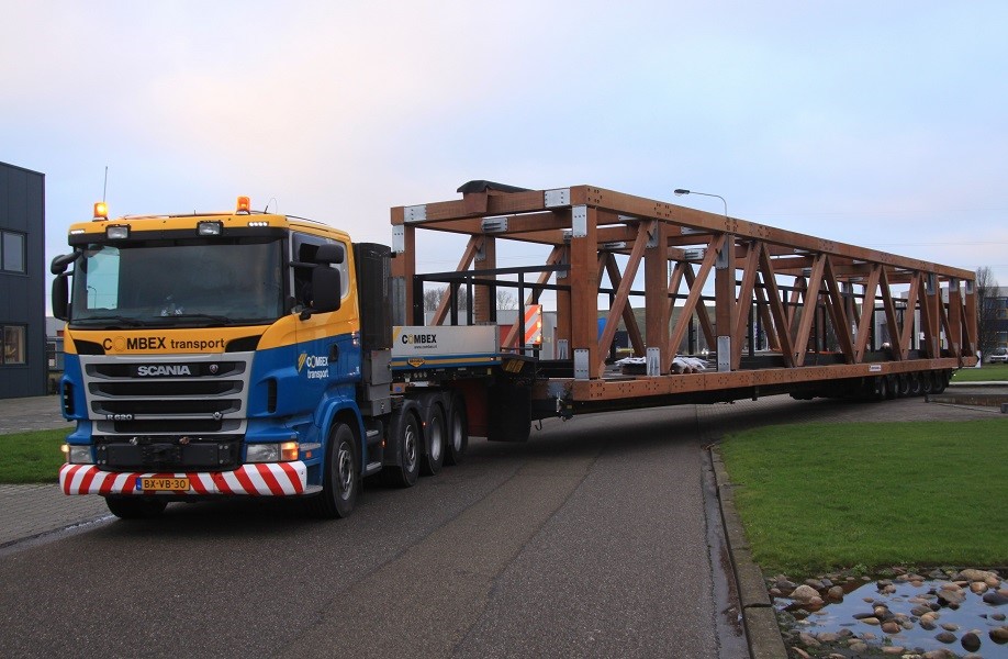 Houten traverse op transport