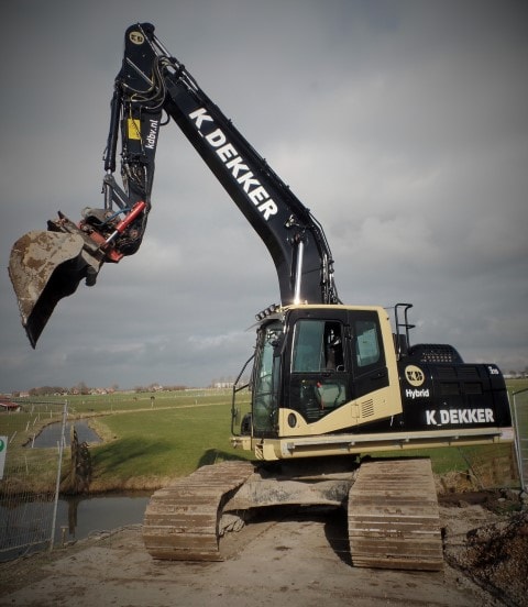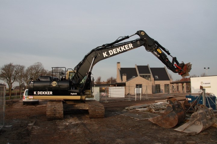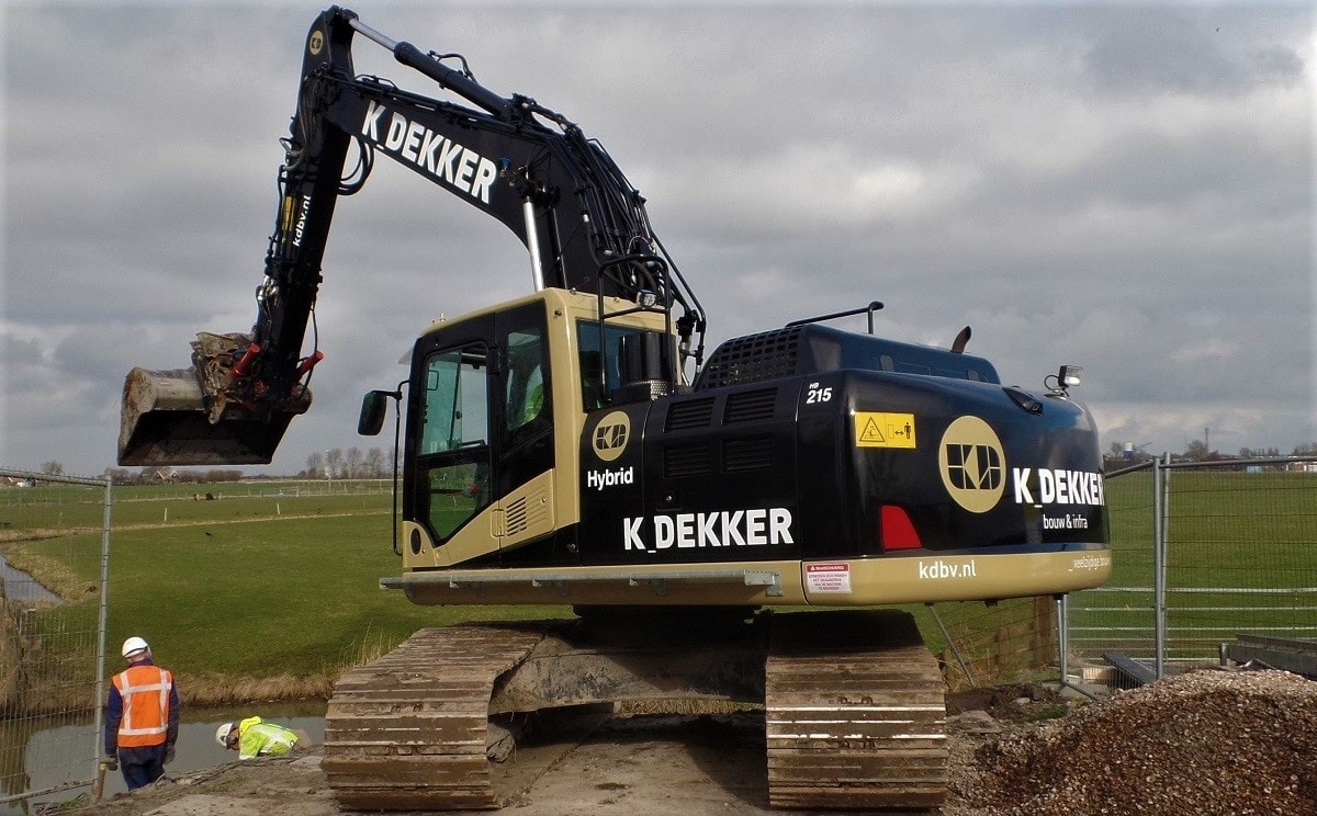 Eind januari is onze Hybride kraan in een nieuwe jas gehesen. Geheel in de nieuwe huisstijl is de kraan nu een opvallende verschijning op onze projecten. De Komatsu HB 215 Hybride is een zeer milieuvriendelijke machine met een lage CO2 uitstoot en een laag brandstofverbruik.