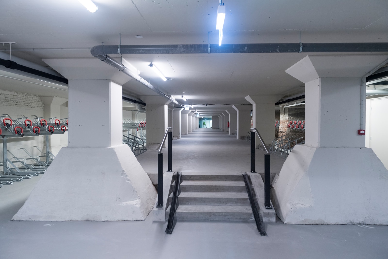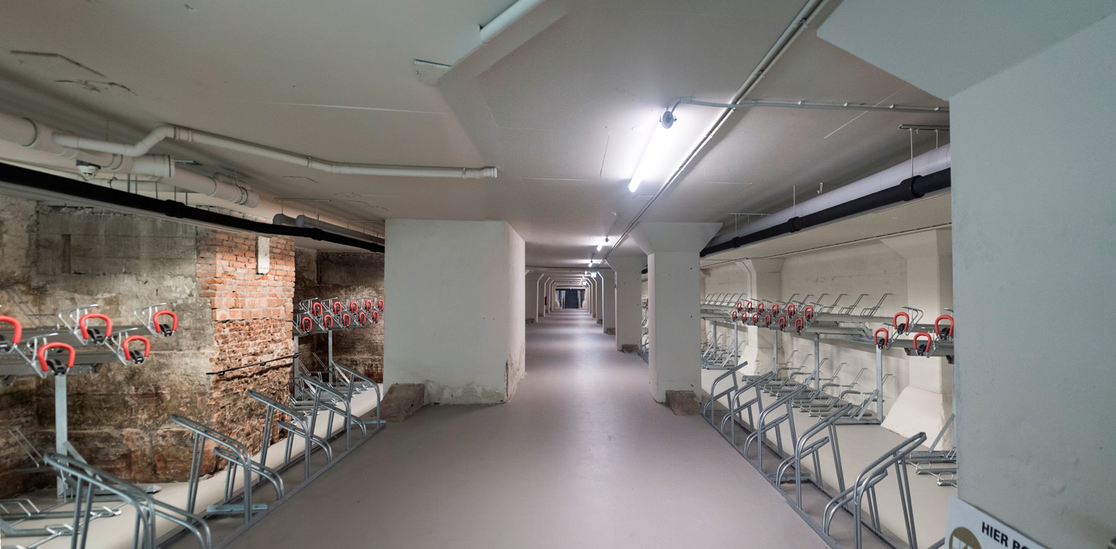 Door de sloop van de kalkzandsteenwanden in de kelder kwam tot ieders verbazing de monumentale fundering van het stationsgebouw tevoorschijn. Deze heeft een unieke uitstraling en helemaal van deze tijd; daarom is besloten deze in tact te laten. Na de sloop is de nieuwe betonvloer in de kelder aangebracht. Vanaf januari is de afbouw van de fietsenstalling van start gegaan, zoals het plaatsen van de strakke binnen puien en de toegangstrap naar de kelder met brandwerende puien. K_Dekker heeft tevens alle technische installaties vernieuwd.