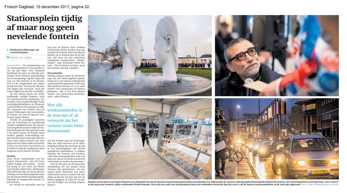 De afgelopen twee jaar heeft K_Dekker hard gewerkt om dit te realiseren voor de gemeente Leeuwarden. De herinrichting van het stationsgebied inclusief nieuw busstation, het autovrije plantsoen met de fontein ‘Love’, naar het ontwerp van Spaanse kunstenaar Jaume Plensa en de bouw van de nieuwe fietsenkelder zijn door K_Dekker gerealiseerd.