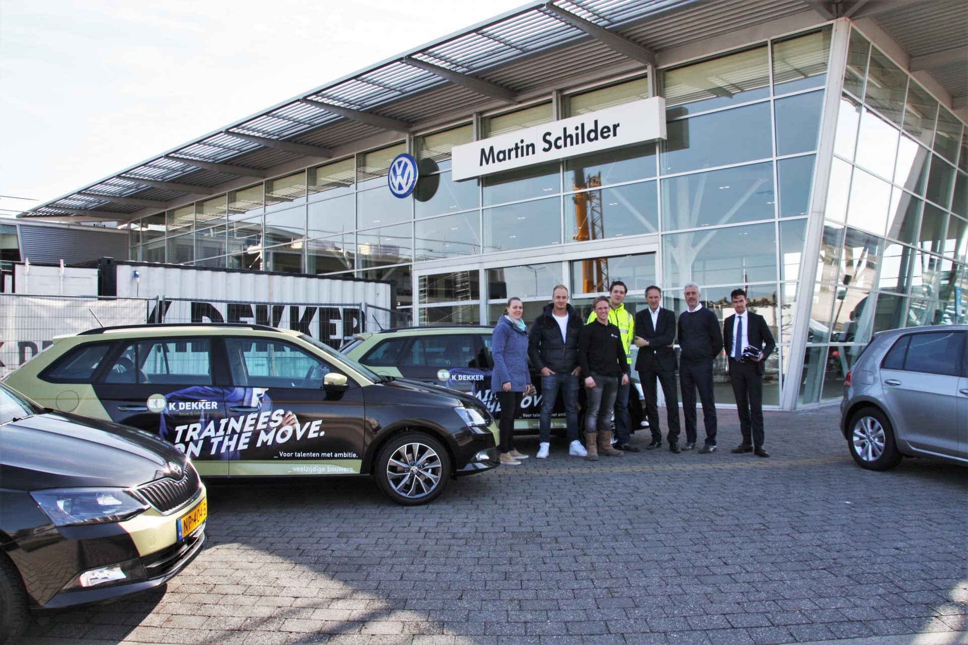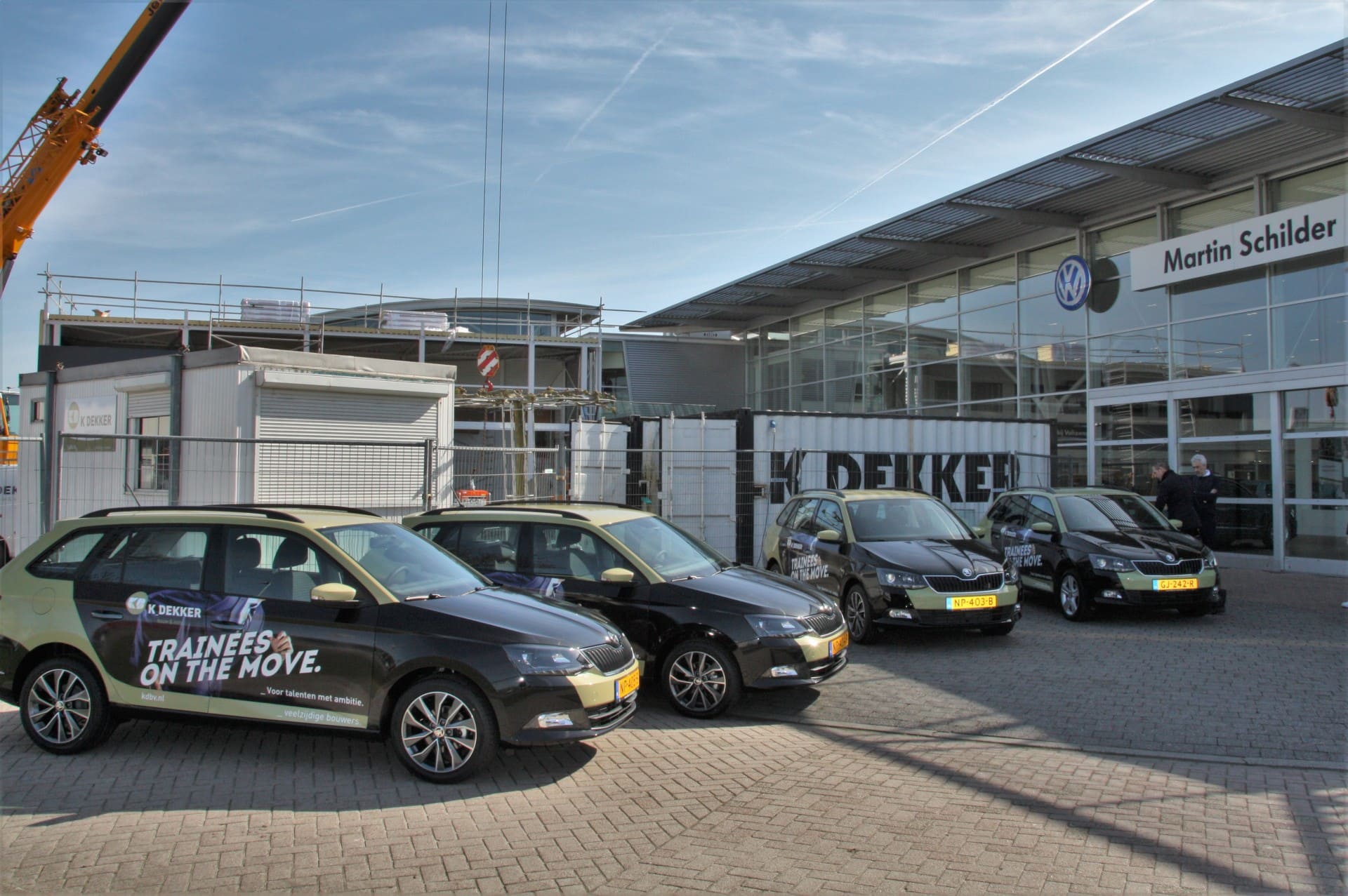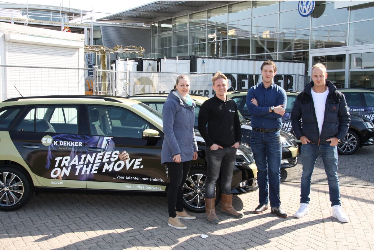 Onlangs is er een nieuwe lichting trainees gestart bij K_Dekker bouw & infra b.v.. Laatst hebben zij hun nieuwe Škoda Fabia van Martin Schilder met een opvallende reclame-uiting in ontvangst genomen. Met deze opvallende auto’s wil K_Dekker de aandacht trekken van talentvolle jonge mensen met ambitie.