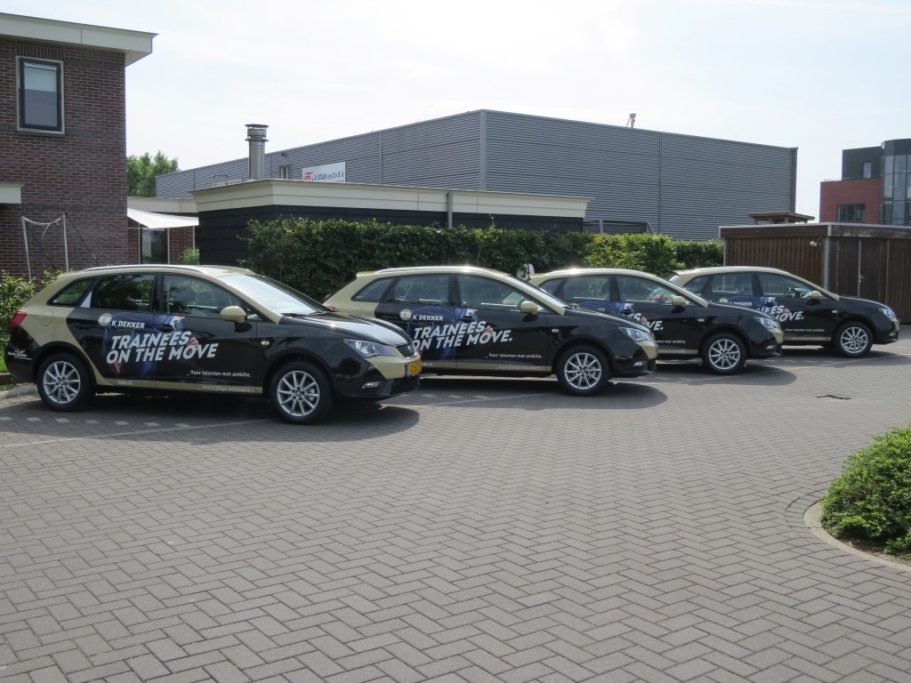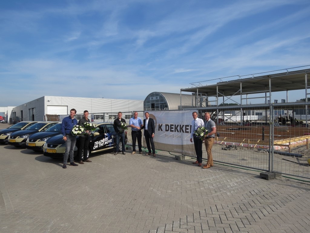 Op 21 juli 2016 hebben de trainees een nieuwe auto tot hun beschikking gekregen met de passende tekst: “Trainees on the move”. Een auto die uitstraalt dat ze in beweging zijn. In beweging naar de top van het bedrijf. De auto’s zijn geleverd door Martin Schilder Groep waar K_Dekker bouw & infra tevens één van de modernste Audi showrooms van Nederland voor realiseert. Een mooi voorbeeld van gezamenlijk zaken doen.