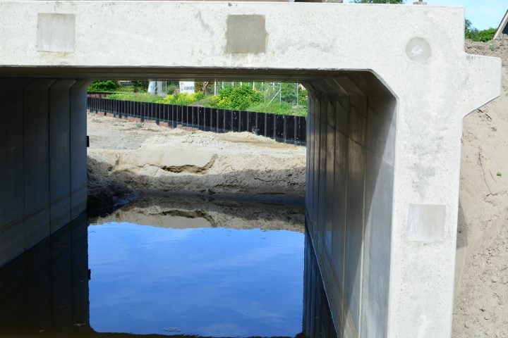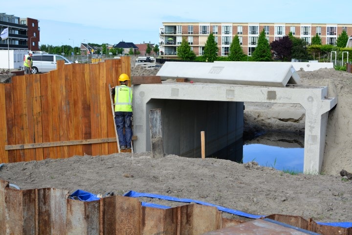 Een hoger waterpeil om een sloot doorvaarbaar te maken vereist extra maatregelen om de aangrenzende straten te beschermen tegen het water. K_Dekker sloeg damwanden, legde twee duikers en de riolering aan. Omdat de omgeving centraal stond in dit project, is het aangemeld bij de Bewuste Bouwers.