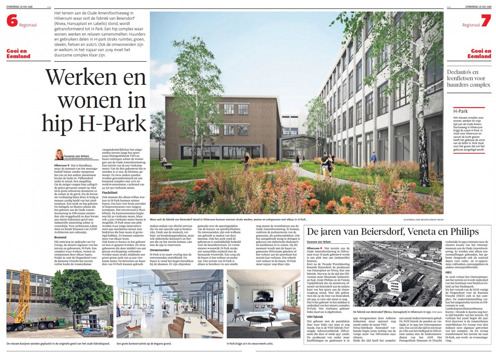 Live. Work. Create. Dat zijn de drie kenmerken van het H-Park welke K_Dekker in Hilversum realiseert. H-Park wordt het nieuwe, bruisende woon- en werkcomplex aan de Oude Amersfoortseweg in Hilversum. In een schitterend, nieuw aangelegd park liggen de historische panden van onder andere Beiersdorf en het Omroepmuseum. K_Dekker renoveert deze panden om er een unieke samensmelting van kantoren, woonunits en horeca van te maken. Meer informatie over dit project via https://h-park.nl/