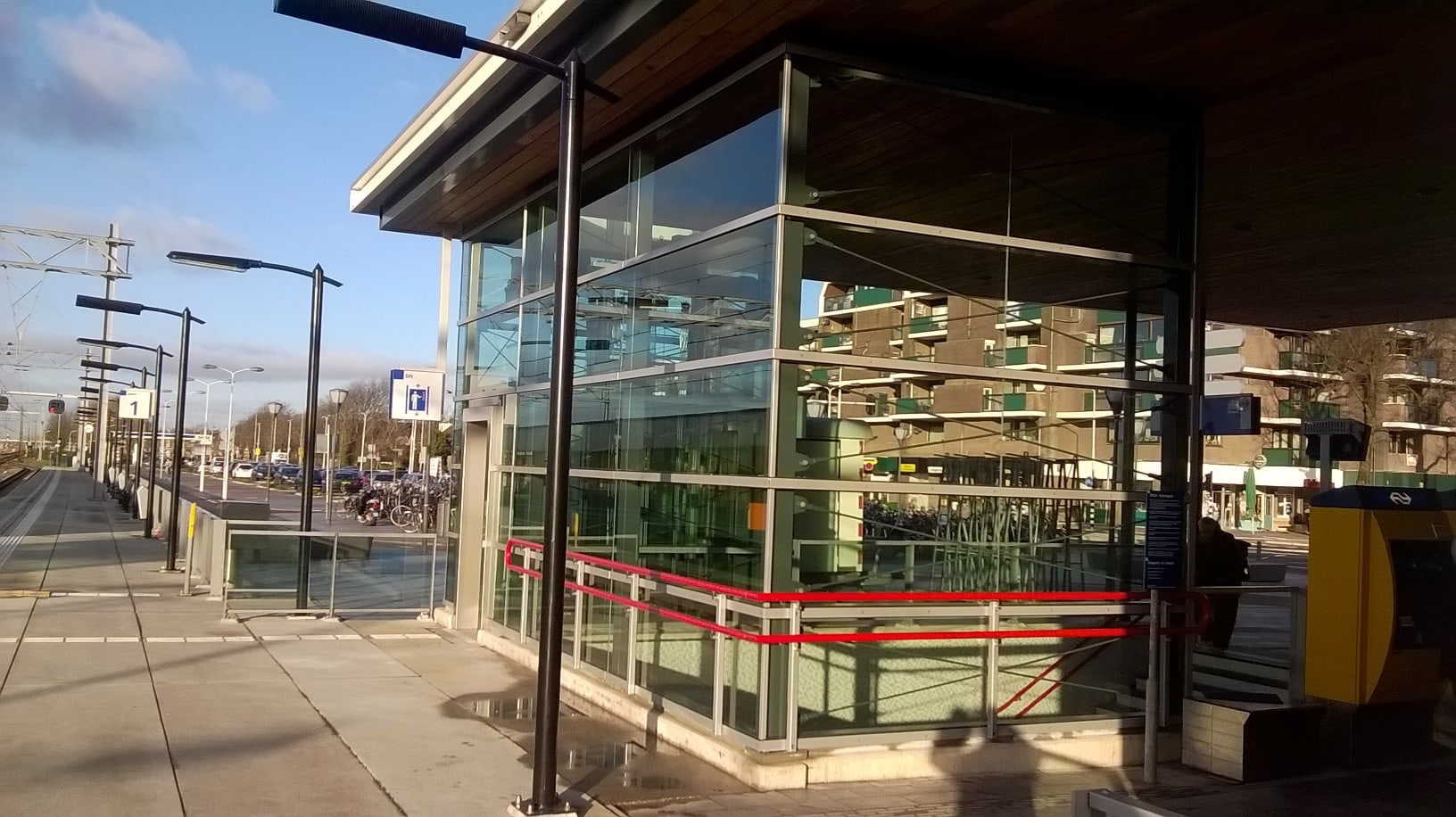 In verband met het werken in de nabijheid van het spoor, de veiligheid en overlast voor reizigers is er de afgelopen weken in nachten en in het weekend gewerkt om deze windschermen te realiseren. Inmiddels is het staal en glas geplaatst en word de laatste hand gelegd aan het aanhelen van het houten plafond en het afwerken van de constructie.