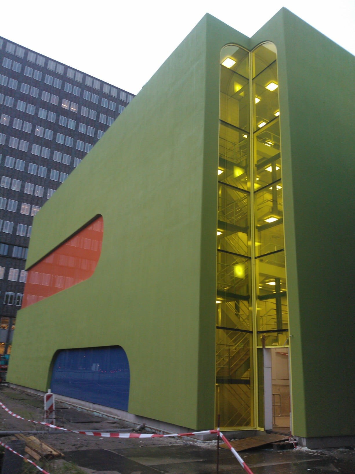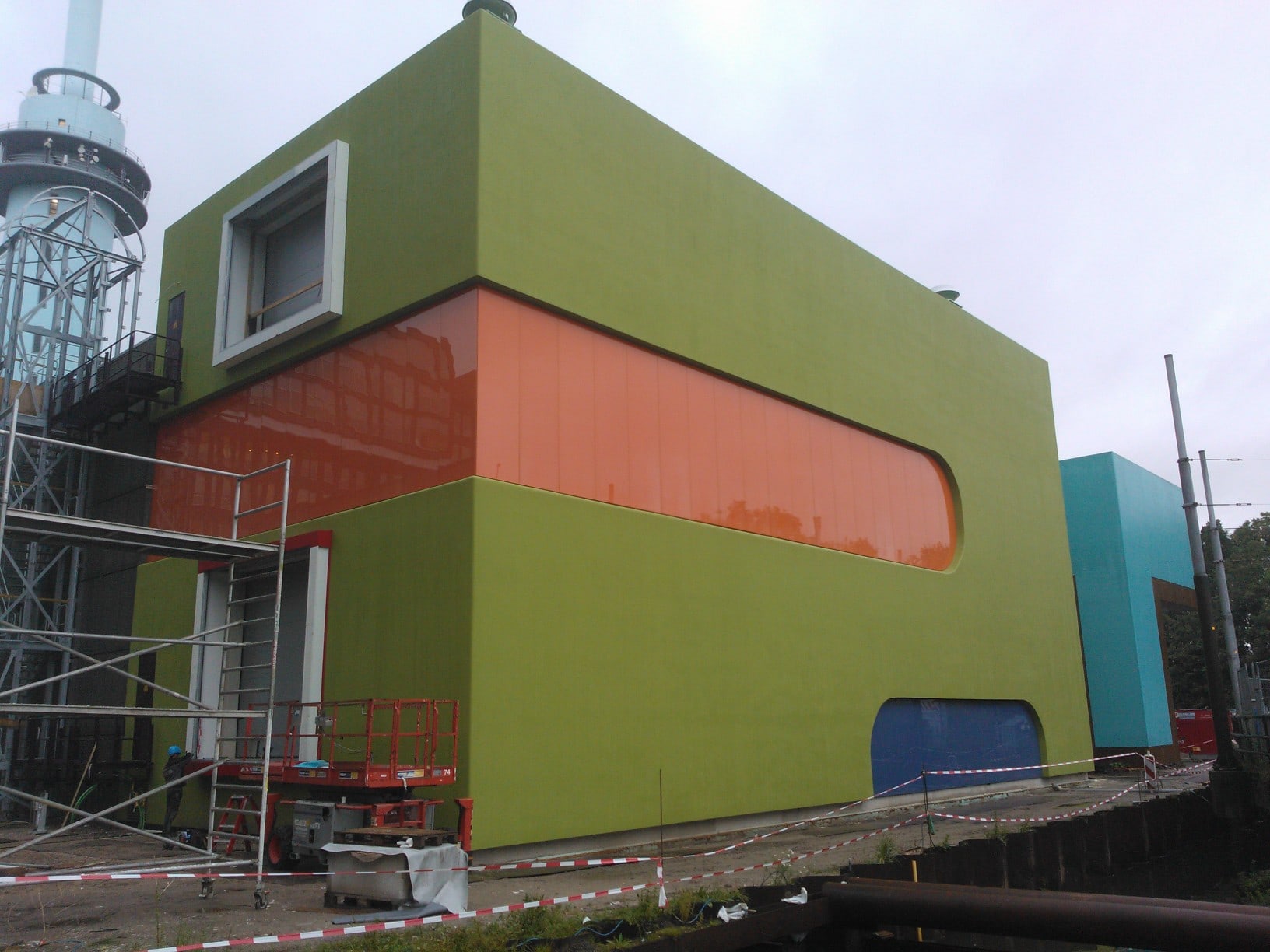 De komende weken wordt er nog een strekmetalen buitengevel (uiteraard ook in kleur) om het noodtrappenhuis geplaatst en dan zitten de bouwkundige werkzaamheden er nagenoeg op en kan Liander in alle rust zijn inpandige installatie werkzaamheden afronden.